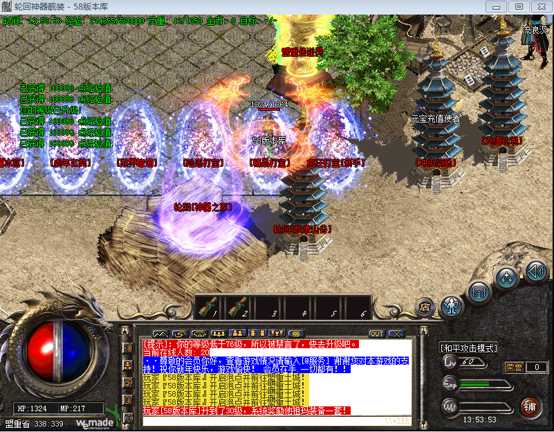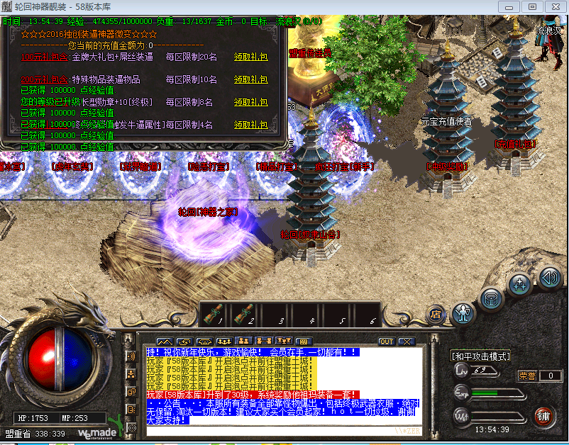 新区开放2天拿沙 奖励100万元宝,老区拿沙奖励30万元宝,在沙皇宫管理员领取!