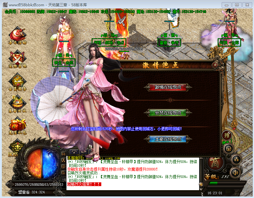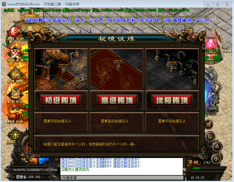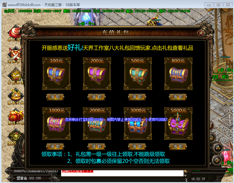 1、新手进服后别慌着打怪.先到城里看看都有些什么NPC级NPC的作用,这样对你初期很有帮助 2、如果你不充钱的,可以先关注下我们的微信,哪里可以领到一个大礼包(听说送麻痹),还可以知道每天的服的活动 3、当然开始先转生啦.1-10转就在土城左上角,领取微信礼包直接去转吧.然后要说明的是10-20到转哪里转、请注意了:在土城点 初级地图有个-致星密室地图,然后还可以进去有个隐藏地图,就是那里,(转生材料呢外面的小怪都会爆的,自己慢慢去打) 隐藏地图还有小boss 4、20转-30转你就别着急了,在第二大陆天界大陆的安全区里面、你现在也没有材料转,所以也别着急,慢慢打怪、20转到-26转稍微简单、后面稍微困难点哦、本服35转呢,我就不多说了,估计等你30转你也清楚哪里转了