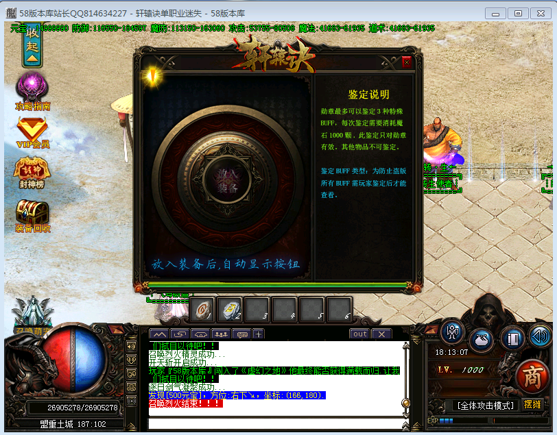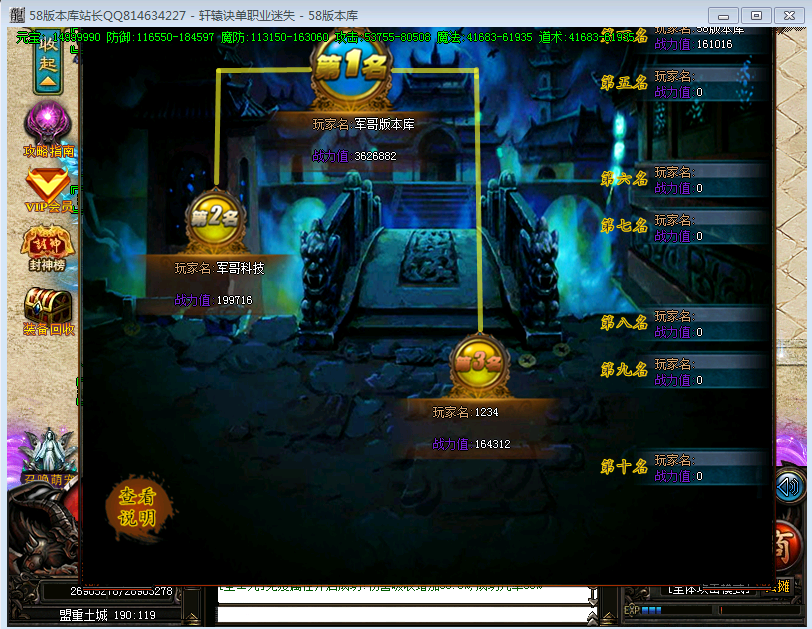 版本提供:【辉哥版本库】 版本编码;d130 版本代码;h 补丁大小;3.28g QQ交流群: 1群1000人群;249275434 2群:249275434 三群;483868832 轩辕诀单职业迷失传奇版本-潘夜神殿-秦皇陵宫-乾坤魔宫-沼泽龙潭【友情提示】所有装备游戏中爆出,适合长期玩家入驻!介绍只是片面的,一个游戏真正的特殊和乐趣还需要大家自己去体验,希望大家在我们的游戏玩的开心!欢迎进入,本服为散人游戏★重金广告★龙头型★最响亮的3D轩辕决最新版.2016年8月全国版本之精华,玩一年绝不后悔!无限封挂★开挂者,死全家★登陆本服务器需要专用登陆器,否则不能登陆,是为了禁止外挂的,出现,登陆器按F12呼出自带内挂,封穿人穿怪。本服务器禁止任何外挂,取空白游戏名字,发现空白名字或外挂者,不管是否花钱,发现开挂直接踢了永久封IP,不信试试!骗子骗术骗术1:冒充NPC喊话,起空格名,或者某个NPC的名字,喊话卖元宝等!骗术2:冒充NPC喊话,起空格名,或者某个NPC的名字,喊话卖元宝等!骗术3:冒充NPC喊话,起空格名,或者某个NPC的名字,喊话卖元宝等!骗术3:冒充NPC喊话,起空格名,或者某个NPC的名字,喊话卖元宝等!骗子骗术1:在好友游戏后面加空格,冒充好友游戏中向你索要帐号密码!骗术2:在好友游戏后面加空格,冒充好友游戏中向你索要帐号密码!骗术3:在好友游戏后面加空格,冒充好友游戏中向你索要帐号密码!独家品牌★服务器长期稳定,游戏公平!在轻变基础上精心修订,散人好混!各个地图都能打到好装备、只要有耐心,有时间,终极装备全部爆!我们始终坚持以你提我改的信念来运行!相信有您的参与末日屠龙才会更精彩!真诚的提醒玩家朋友们在本服不要被骗,祝大家游戏愉快!