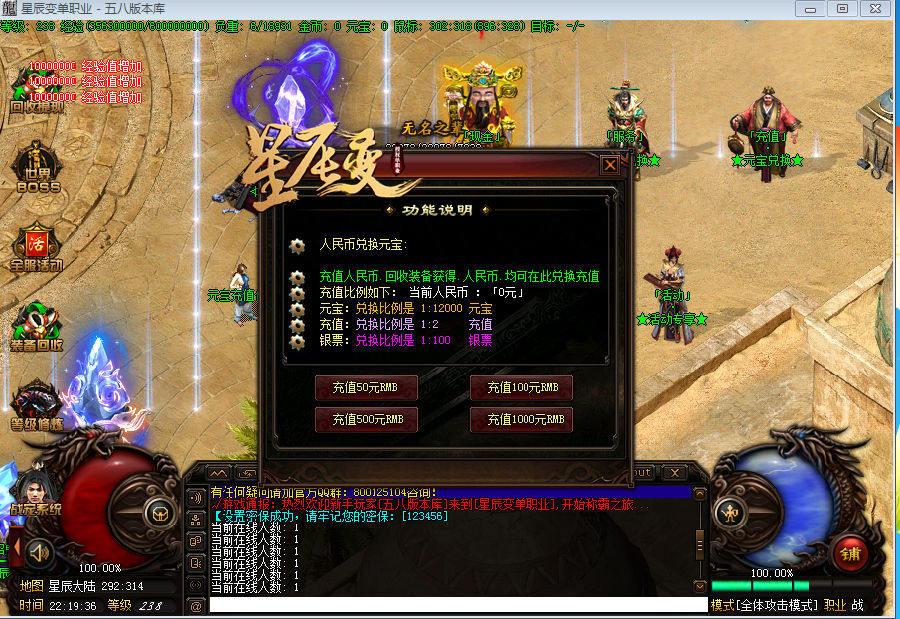 [拿沙奖励] 元宝1:5000,银票1:50,点卡80%,网银100%!