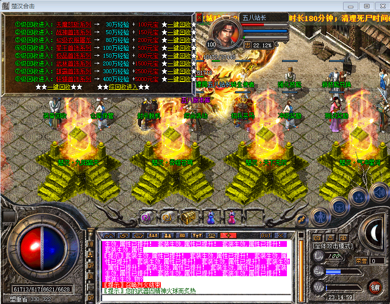 ===免费泡到100满级,本服所有装备全部靠打,真正的散人好混,激情无限,装备全靠打! 游戏介绍小怪爆,BOSS爆率非常高,米累计回馈,一天可打500,不冲钱一样领取顶级赞助礼包! 游戏介绍一切物品全部爆出,在线回收,超牛道宝。全图刷BOSS打不完,爆终极几率非常高,本服绝对爆装备! 游戏介绍元宝比例1:20000网银赠送120%,点卡赠送100%,充值永久赠送20%。 游戏介绍很多服说终极全爆都他妈忽悠人的,但在本服那绝对爆,别说我没告诉你。 游戏介绍首沙奖励188米 小阶段区588米 统战区2888米 总战区16000米!!!!!!!