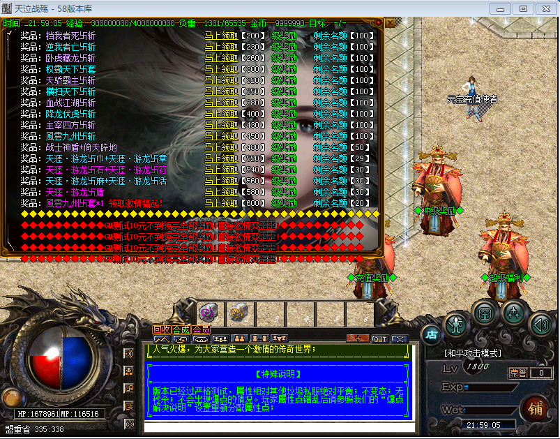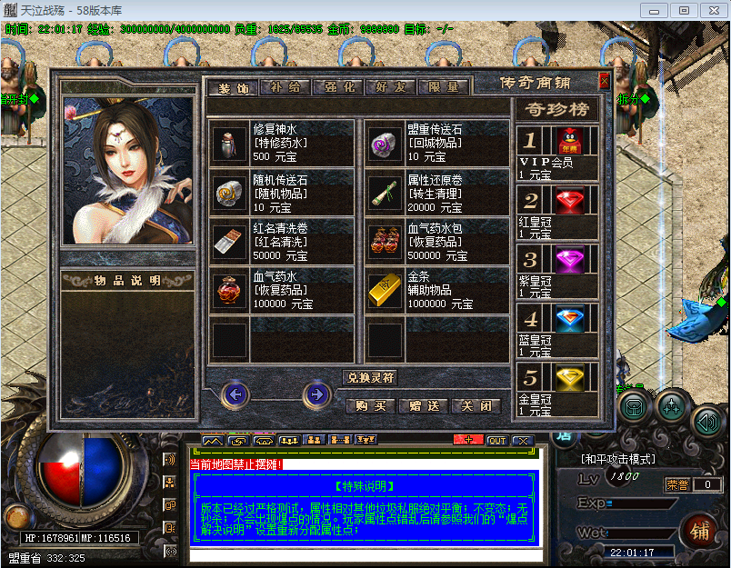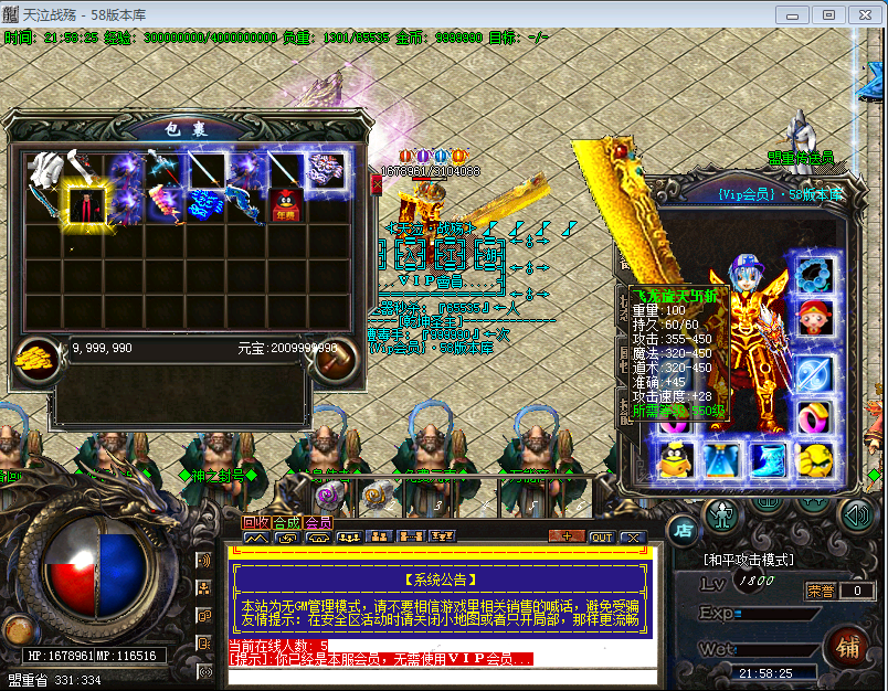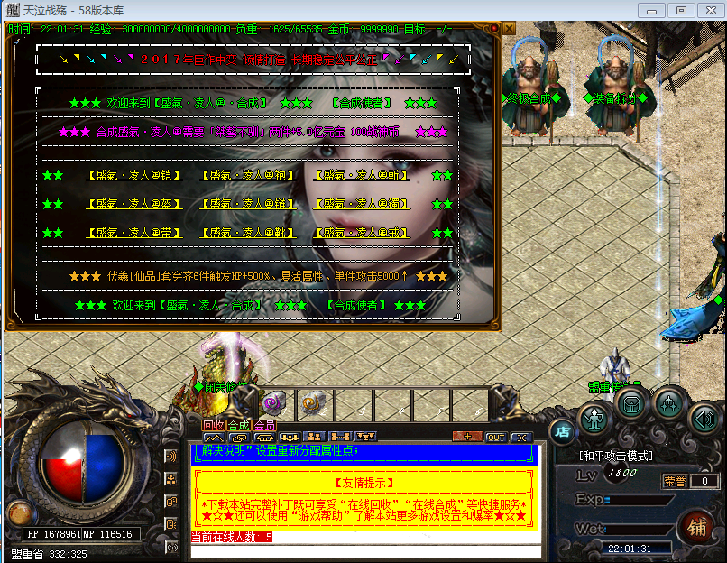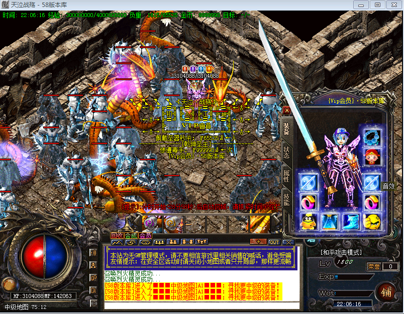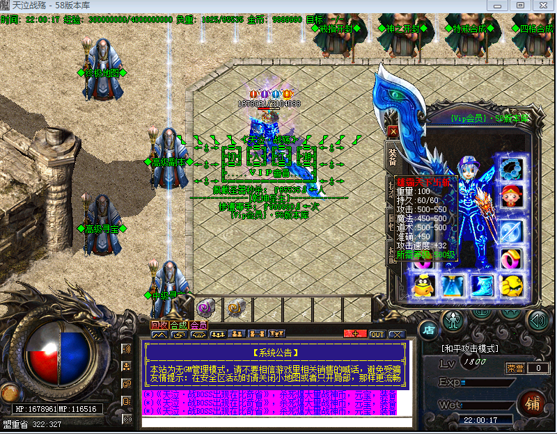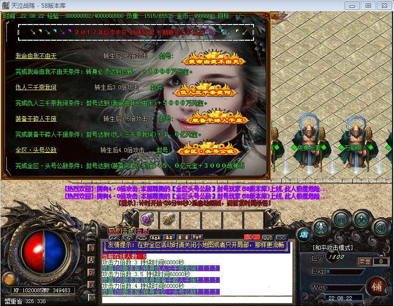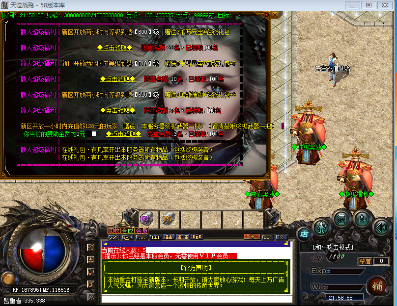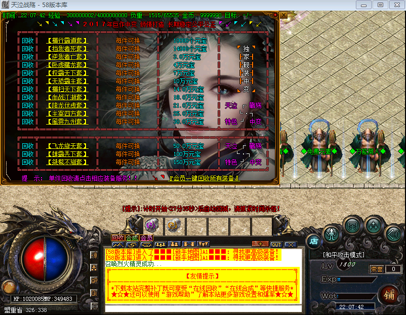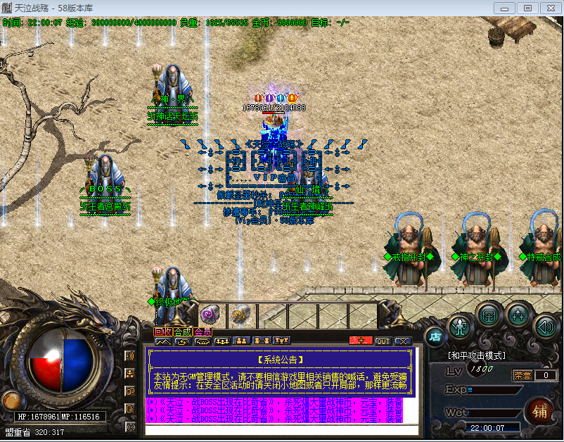 【版本介绍】本服元宝、战神币、狂暴。散人超好混,土豪超神速