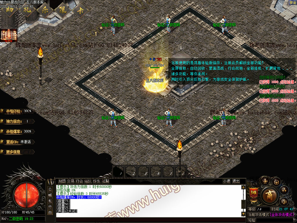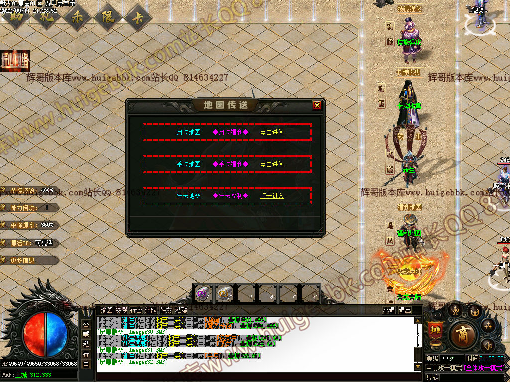 此次版本抛去杂乱无章特殊升级,像时装,马牌,特殊戒指等等 这些东西都只能打怪物获得,或者其他玩家手里收购,材料也是 商城不出售任何材料!版本货币完美兑换增加:会员碎片和金币可以兑换 元宝,降低白嫖难度。此次版本能上来升级满的就:称号以及 恢复宝石和会员宝石三样东西!当然后条件直接搞满,没条件自己 打货币升级!此次版本为长期复古+沉默+嘟嘟+暗黑风多版本结合! 有时间你就是大爷!地图不设置杂乱条件设定达到等级就可以进入 不卡等级,不卡战力,不卡装备,不卡爆率!!!! 此版本玩法简单没那么多杂七杂八设定!一个字就是肝怪物! 材料值钱!纯散人天堂!