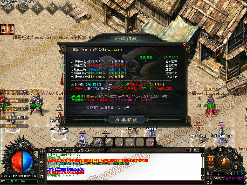 沙捐200大麦(赠送自动挂机!推广领取CDK获得) 捐献2000大麦(获得榜一属性) 百分百进沙捐