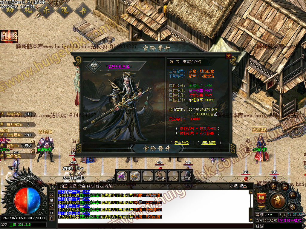 称号升级也可以用元宝直接升级或者打材料升级!